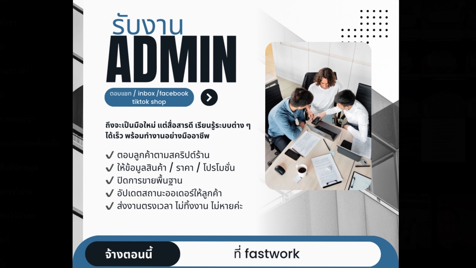 รับงาน admin ตอบแชท (รับงานช่วงเย็นนะคะ)