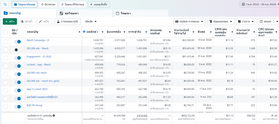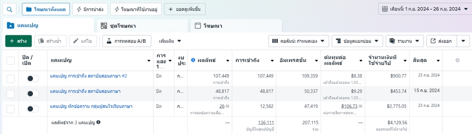 บริการโฆษณาออนไลน์แบบครบวงจร: ยิงแอดแม่นยำ เพิ่มยอดขายทันที เรานำเสนอบริการโฆษณาออนไลน์ที่ครอบคลุมแพลตฟอร์มหลักทั้ง Google Ads, Facebook และ Instagram โดยทีมผู้เชี่ยวชาญของเรา พร้อมรับประกันผลลัพธ์ด้วยสโลแกน "ทำจริง วัดผลจริง ได้ยอดขายทันที" ปล.ด้วยบริการของเรา คุณจะได้รับประโยชน์เสมือนมีทีมผู้เชี่ยวชาญด้านการตลาดออนไลน์ประจำบริษัท พร้อมผลักดันธุรกิจของคุณสู่ความสำเร็จในโลกดิจิทัล ขั้นตอนการทำงาน 1. ลูกค้าแจ้งรายละเอียดเนื้องาน : แพล็ตฟอร์ม + กลุ่มลูกค้าที่ต้องการ + เป้าหมายโฆษณา + ระยะเวลา + งบประมาณ 2. นำเสนอแพลนงาน : เพื่อตรงตามเป้าหมายที่ลูกค้าต้องการ ภายใน 3 วัน 3. ดำเนินการตามที่ตกลงกัน 4. จัดส่ง Report + วิเคราะห์ผลลัพธ์ พร้อมคำแนะนำสำหรับแอดครั้งถัดไป