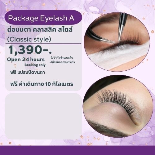 ฿1,390Classic Style -ไม่จำกัดจำนวนเส้น -ฟรี แปรงปัดขนตา -ฟรี ค่าเดินทาง 10 กิโลเมตร