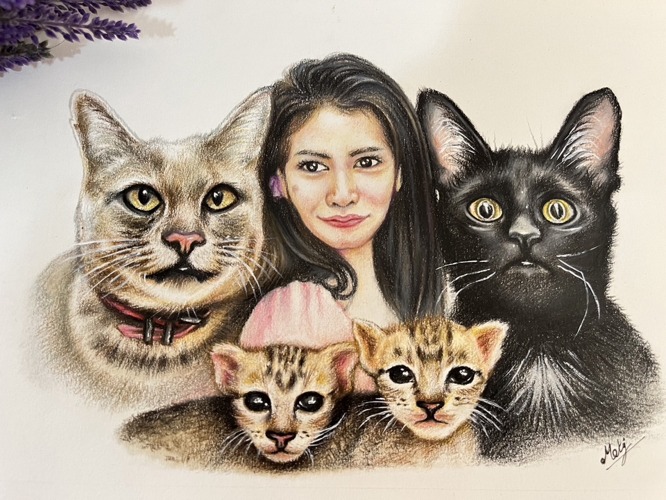 รับวาดภาพเหมือน เทคนิคสีไม้ดินสอและ Digital painting /ภาพบุคคล/สัตว์เลี้ยง/ปกนิยาย