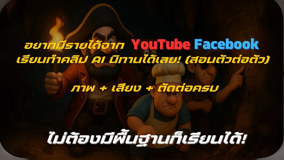 สอนสร้างคลิป AI คอนเทนต์-นิทาน | ภาพ+เสียง+ตัดต่อ+อัปโหลด YouTube/Facebook