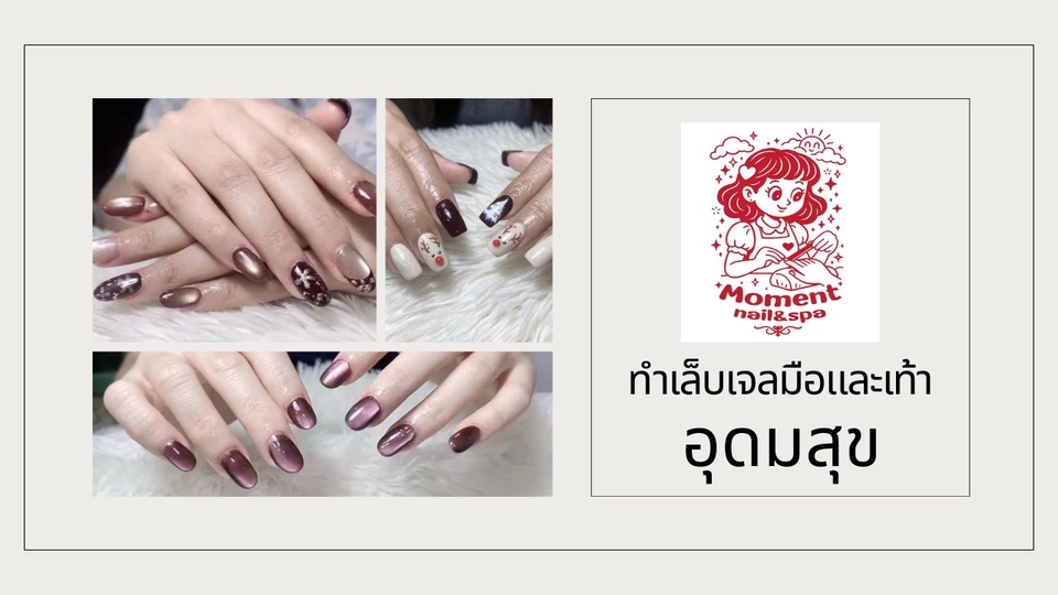 💅 Moment Nail – เพราะทุกโมเมนต์คู่เล็บสวยของคุณสำคัญที่สุด! ทำเล็บเจล | เพ้นท์ | สปาเล็บ | ต่อเล็บ 📍 สาขาอุดมสุข 51 เปิด ทุกวัน 11.00-21.00 น. 📍 สาขาตลาดรถไฟศรีนครินทร์ ล็อคA88 เปิด พฤ-อาทิตย์ 15.00-00.00 น.