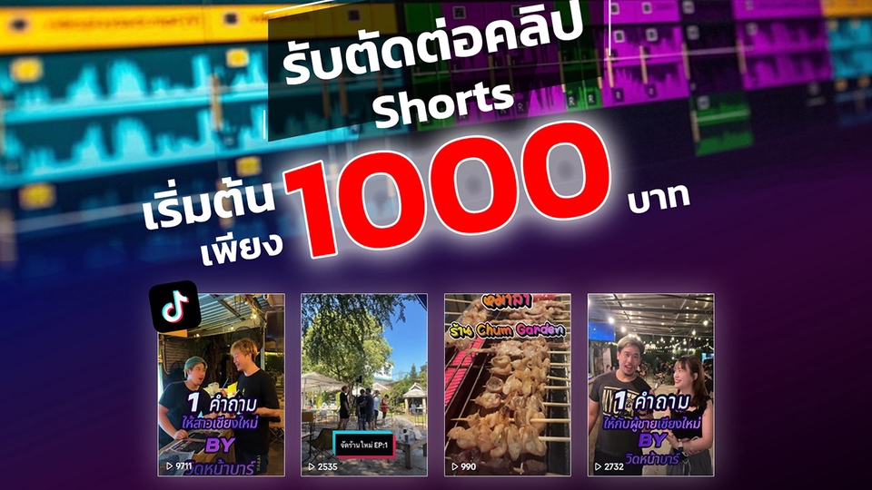 รับตัดต่อคลิปสั้น 1-2 นาที Tiktok/Reels/Instagram/Shorts (ภายใน 1 วัน)