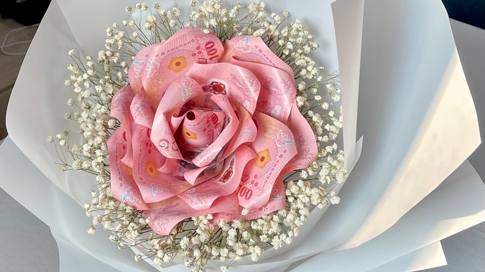 รับจัดช่อเงิน ช่อดอกกุหลาบจากธนบัตร ,สอนวิธีการพับดอกกุหลาบจากธนบัตร