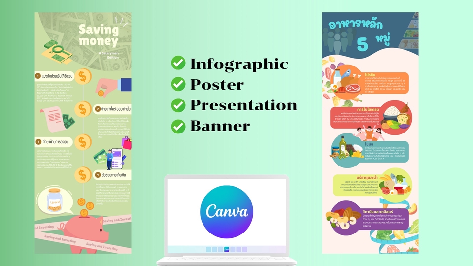 รับออกแบบและทำงานทุกแบบใน canva Infographic | Presentation | Poster | Banner