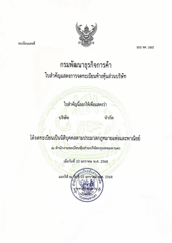 ฿17,000จดทะเบียนบริษัท โดยสามารถระบุวันที่คุณลูกค้าต้องการตามฤกษ์ได้