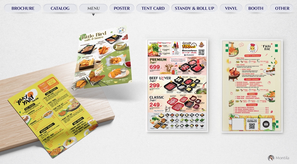 ออกแบบโบรชัวร์ ใบปลิว โปสเตอร์ เมนูอาหาร และอื่นๆ