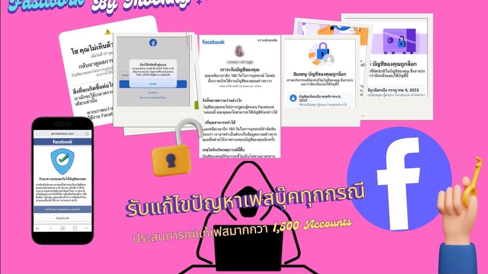 รับแก้ไขปัญหาเฟสบุ๊คทุกกรณี เฟสติดล็อก เฟสโดนปิดระงับ 180 วัน เฟสติดสองชั้น เฟสลืมรหัสผ่าน ปิดเฟส