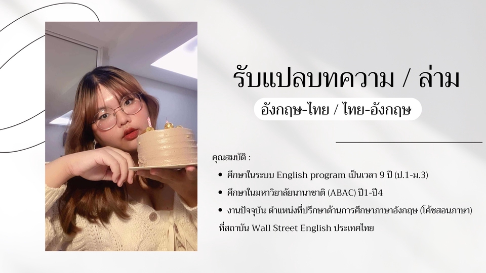-Friendly -ถนัดงานเขียน (โดยเฉพาะวรรณกรรม / นิยาย) -เรียนสาขารองด้านการตลาด -ชอบคุยกับคน ชอบเล่นกับสัตว์ ทั้งปกติและ exotic -ใจเย็น คุยได้ พร้อมรับฟังแต่ไม่ตัดสิน