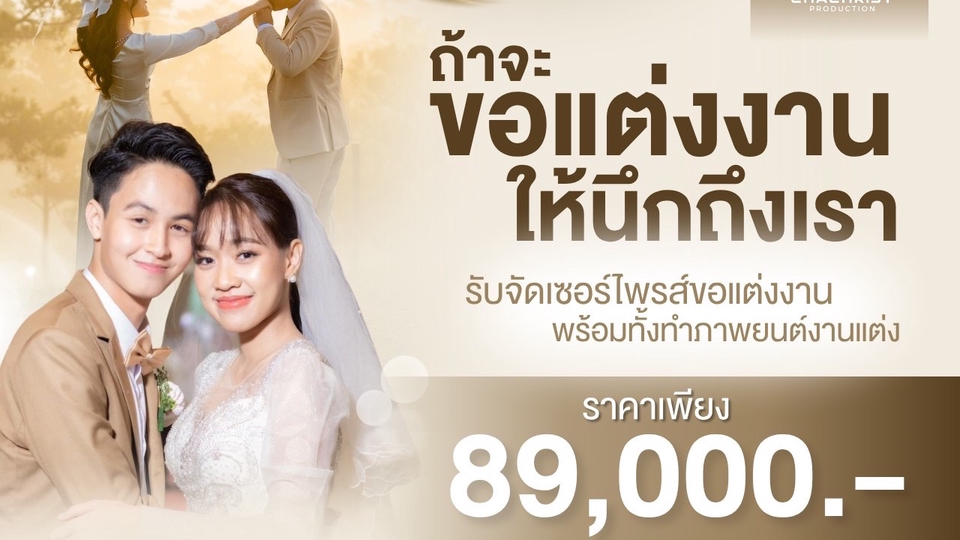 ฿15,000ราคานี้ ลูกค้าจะได้การคิดเซอร์ไพรส์จากทางเรา พร้อมกันกับได้วิดีโอ 3 นาที ในการเอามาเซอร์ไพรส์เจ้าสาว , และทางเราถ่ายรีแอ็คชั่นให้