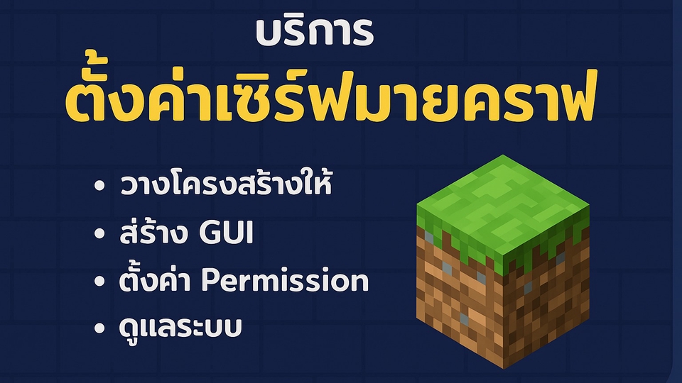 ให้บริการตั้งค่าเซิร์ฟเวอร์ Minecraft แบบครบวงจร ทั้งการเขียนระบบ แนะนำการใช้งาน สร้าง GUI และออกแบบระบบให้เหมาะกับเซิร์ฟเวอร์ของคุณ พร้อมให้คำปรึกษาอย่างมืออาชีพทุกขั้นตอน