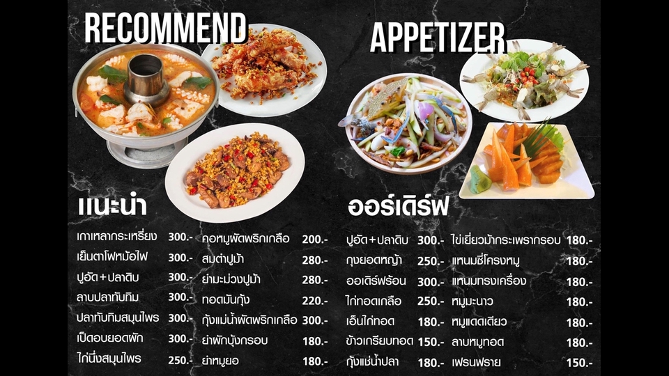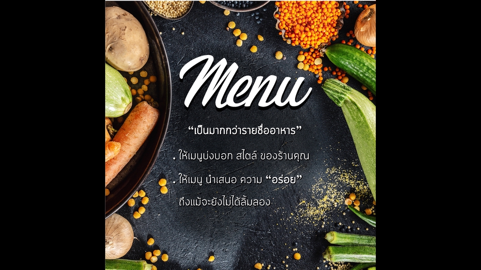 ออกแบบ เมนูอาหาร สื่อโฆษณา ใช้กับสื่อสิ่งพิมพ์ และ โซเชียลมีเดีย ต่างๆ