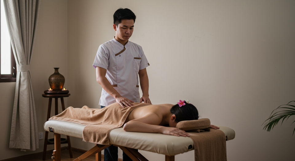 รายละเอียดบริการ: - นวดไทยแผนโบราณ ช่วยคลายเส้น - ลดอาการปวดเมื่อยจากการทำงาน - ปรับสมดุลร่างกายด้วยเทคนิคเฉพาะ - บรรยากาศสะอาด ผ่อนคลาย ขั้นตอน: 1. เลือกโปรแกรมที่ต้องการ 2. ประเมินจุดที่ปวดเมื่อย 3. ผ่อนคลายกับบริการนวดคุณภาพ พื้นที่: จตุจักร