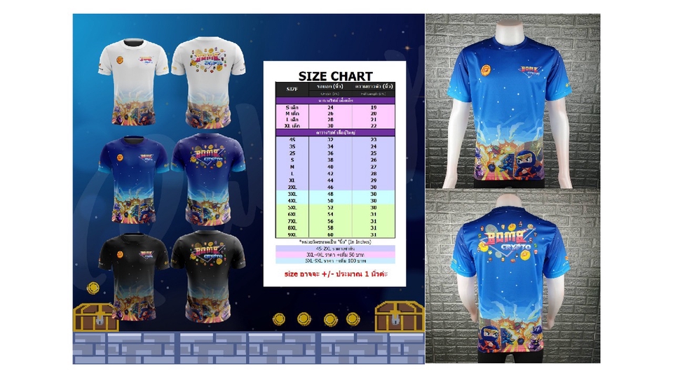 เราคือทีมที่เชี่ยวชาญในการออกแบบและผลิตเสื้อผ้าทั้งเสื้อกีฬาและเสื้อแฟชั่นที่ตอบโจทย์ทุกความต้องการของคุณ ทุกชิ้นงานถูกสร้างขึ้นจากวัสดุคุณภาพและดีไซน์ทันสมัย ไม่ว่าจะเป็นเสื้อกีฬาที่ทนทานและสวมใส่สบาย หรือเสื้อแฟชั่นที่โดดเด่นและสะท้อนตัวตนของคุณ เราพร้อมที่จะทำให้ไอเดียของคุณเป็นจริงด้วยงานออกแบบที่ลงตัว ****หากคุณต้องการสั่งผลิตสินค้า โปรดแจ้งจำนวนที่ต้องการให้ทีมกราฟิกของเรา เพื่อให้เราสามารถประเมินราคาสินค้าได้อย่างแม่นยำ ทีมกราฟิกจะจัดเตรียมและส่งราคาการผลิตให้คุณในทันที ขอบคุณค่ะ**** ขั้นตอนการทำงาน 1. แจ้งกราฟิกถึงประเภทเสื้อผ้า (กีฬา, แฟชั่น) และความต้องการเฉพาะ เช่น สไตล์, สี, หรือฟังก์ชันการใช้งาน 2. ขึ้นแบบ mockup ตัวอย่าง ให้กับลูกค้า และแก้ไข 3. ทีมงานจะจัดเตรียมตัวอย่างการออกแบบ Mockup ให้ตรวจสอบ ก่อนดำเนินการผลิตจริง 4. หากต้องการสั่งผลิต กรุณาแจ้งรายละเอียดให้ทีมกราฟิก เพื่อให้เราประเมินราคาการผลิตและดำเนินการต่อไป