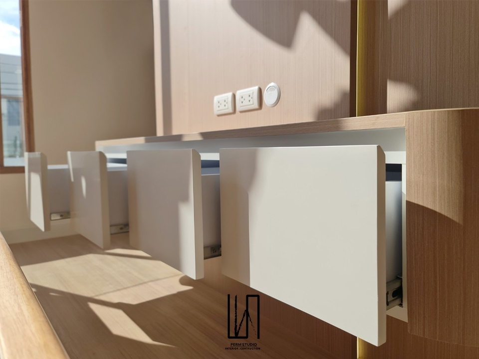 บริการออกแบบ ตกแต่งภายใน และรับเหมาต่อเติม ค่าบริการออกแบบคิดเป็นตารางเมตรละ 500 บาท รวมงานเขียนแบบเฟอร์นิเจอร์บิ้วอิน ปรับแก้งานออกแบบได้จำนวน 3 ครั้ง นอกเหนือจากนั้นมีค่าใช้จ่ายเพิ่มเติม ขั้นตอนการทำงาน 1. ประเมินราคาเบื้องต้น/วัดหน้างาน 2. เขียนแปลนเลเอาท์การวางตำแหน่ง 3. ออกแบบ 3D perspective 4. เขียนแบบเฟอร์นิเจอร์บิ้วอิน/แบบต่อเติม/แบบรีโนเวท 5. สรุป material กับลูกค้า 6. ทำสัญญาระหว่างผู้ว่าจ้างกับผู้รับจ้าง 7. ชำระค่าบริการตามระบุในสัญญาก่อนเริ่มงาน 7-14 วัน 8. เริ่มเข้าดำเนินงาน 9. ส่งมอบผลงาน