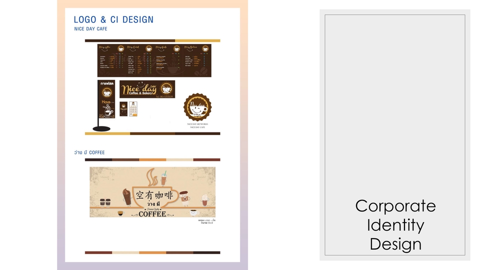 ชื่อผลงาน: ออกแบบโลโก้และอัตลักษณ์ร้านกาแฟ Nice Day Cafe
