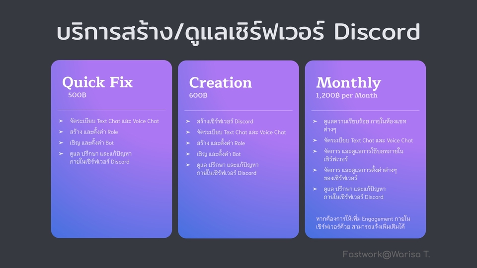 - • บริการดูแลเซิร์ฟเวอร์ Discord 30 วัน