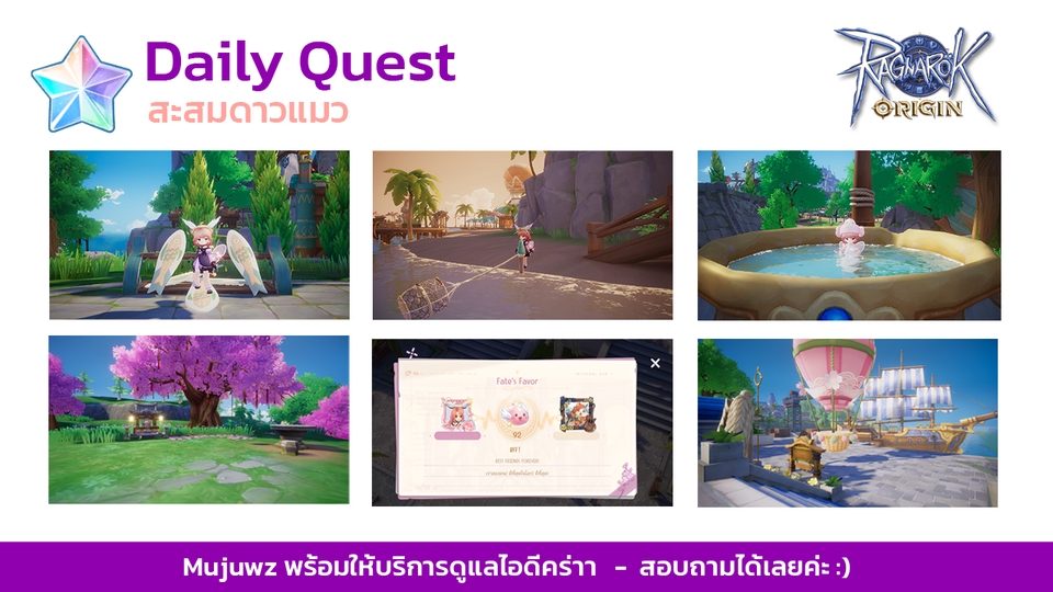 ฿1,500สำเร็จกิจกรรมประจำวัน ทั้ง Daily Quest และ เกาะแมว ดังนี้ 🎈Daily Quest 🎈บอทเวล 🎈หักไม้ 🎈HHH 🎈แช่น้ำร้อน 🎈ดูดวง 🎈เก็บตาข่าย 🎈คุยต้นไม้ 🎈บอลลูน 🎈เรือแมว 🎈ล่าบอส