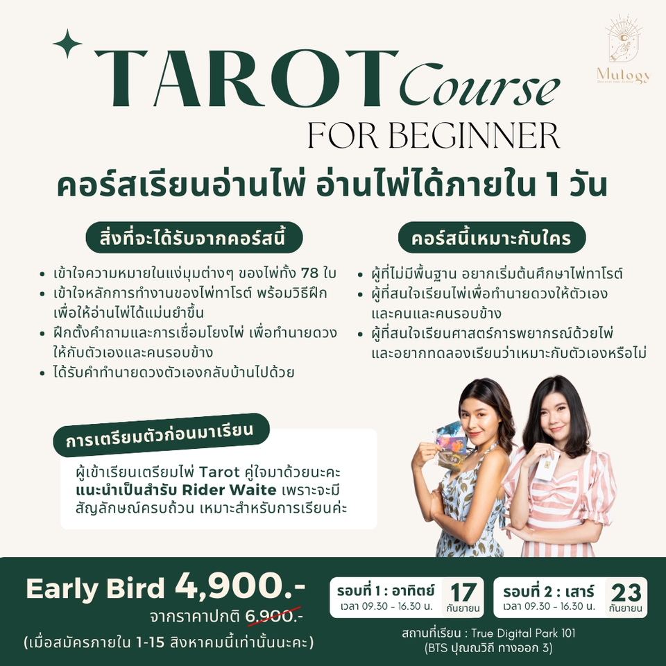 Mulogy (n.) Discover your destiny. 🔮 " มูโลจี้ " พื้นที่ของผู้ที่สนใจศาสตร์การมู เรียนรู้เรื่องไพ่แบบเข้าใจง่าย 🧚🏻♀️✨ โดยหมอนก 🕊️ @Birdeyeview.official และหมอไหม🍭 @Lollipop.tarot
