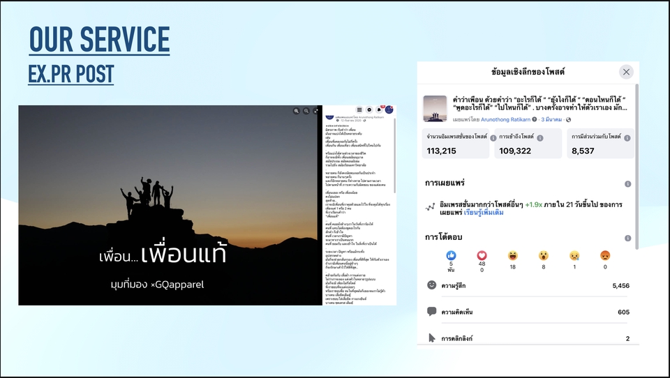 สวัสดีครับผมชื่อนิค เจ้าของเพจ มุมที่มอง ที่มีผู้ติดตาม 200,000 คน ประสบการณ์การทำงาน ปัจจุบัน : Social Media Manager และผู้เขียน Content Writter เพจ ครูเงาะ รสสุคนธ์ ที่มีผู้ติดตาม 2,200,000 คน - ลูกค้าแจ้งประเภทการรีวิวว่าเป็นสินค้า / บริการที่ต้องการให้รีวิว - บริการจะมี 3 รูปแบบ 1. Tie In แถบด้านล่างของภาพที่โพสต์ประจำในเพจ / พร้อมกับโพสต์แคปชั่นของสินค้าหรือบริการ ปิดท้ายด้านล่างของบทความ และโพสต์ลงแฟนเพจคุณภาพที่ผมมีครับ 2. PR Post แบรนด์มีรูปและข้อความให้โปรโมท หรือถ้ามีแต่ข้อความ เพจสามารถหารูปเพื่อประกอบข้อความให้ได้ โดยมีการตกแต่งให้เล็กน้อย พร้อมเขียนบทความสไตล์เพจ โดยเป็นแนวสร้างแรงบันดาลใจ โดยจะโยงเข้ากับแบรนด์นั้น 3. Post Page แบรนด์บรีฟคอนเซ็ปต์คร่าวๆให้ โดยเพจทำภาพตามสไตล์เพจ พร้อมเขียนแคปชั่นสไตล์เพจ โดยเป็นแนวสร้างแรงบันดาลใจ โดยจะโยงเข้ากับแบรนด์นั้น รายละเอียดราคาเพิ่มเติม - แพ็คเกจ Tie In 5 โพสต์ ต่อเดือน ราคา 4,000 บาท 12 โพสต์ ต่อเดือน ราคา 8,000 บาท 15 โพสต์ ต่อเดือน ราคา 12,000 บาท - แพ็คเกจ PR Post 1 โพสต์ ราคา 5,000 บาท อยู่ได้ 7 วัน - แพ็คเกจ Post Page 1 โพสต์ ราคา 10,000 บาท อยู่ได้ 15 วัน หมายเหตุ : งานรีวิวเป็นเพียงการบอกต่อ / รับสิทธิ์ลงในสื่อที่มี แต่ไม่การันตียอดขาย ยอดไลค์ใดๆ โปรดพิจารณาก่อนจ้างงาน ขั้นตอนการทำงาน 1. ผู้จ้างแนะนำสินค้า และความต้องการให้ผู้รับจ้าง หลังจากได้ข้อมูล/ภาพ/สินค้าแล้ว ใช้เวลาคิดคอนเทนต์ ทำรูปไม่เกิน 7 วัน 2. ผู้รับจ้างปฏิบัติงาน 3. ผู้รับจ้างส่งงานให้ผู้จ้างตรวจสอบก่อนโพสจริง 4. ผู้รับจ้างโพสผ่านช่องทางเพจ Facebook