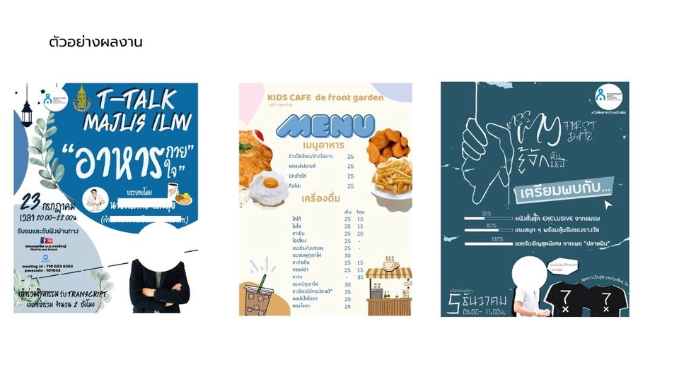 ออกแบบสื่อ ได้แก่ อินโฟกราฟฟิกประชาสัมพันธ์ต่างๆ เป็นต้น