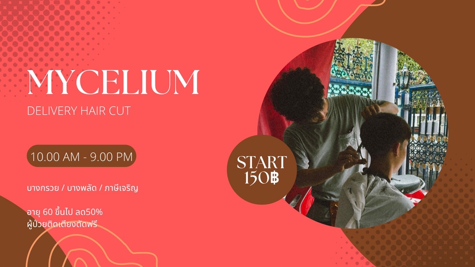 ตัดผมนอกสถานที่ โซน บางกรวย บางพลัด ภาษีเจริญ 60ปีขึ้นไปลด 50%