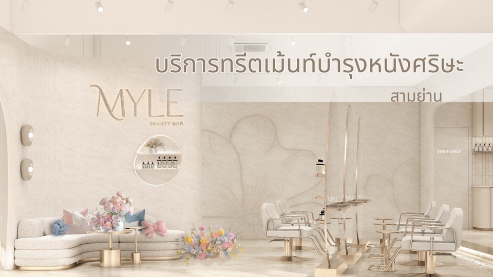MYLE Beauty Bar ซาลอนบิวตี้พรีเมียมใจกลางสามย่าน โดดเด่นด้วยบริการที่ใส่ใจในทุกรายละเอียด พร้อมทีมช่างมืออาชีพที่ดูแลคุณเหมือนคนพิเศษ ให้บริการทำสีผม ตัดผมสไตล์เกาหลี ทำเล็บ และต่อขนตา ในบรรยากาศผ่อนคลาย สะอาด และเป็นส่วนตัว เดินทางสะดวกใกล้ MRT สามย่าน
