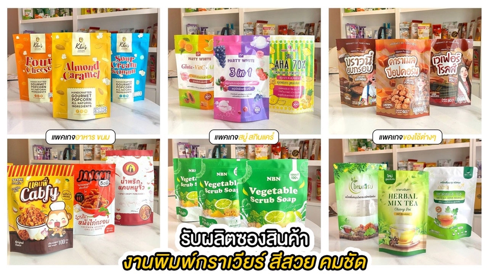 เพิ่มยอดขายปังๆ ด้วยแพ็กเกจจิ้งสวยๆ รับผลิตบรรจุภัณฑ์ ประเภทซอง พิมพ์สีสวย คมชัด - ผลิตซองได้ทุกรูปเเบบ อาทิ ซองก้นตั้ง ซองซีล 3 ด้าน ซองซิป ทั้งสำหรับ สบู่ อาหารเสริม อาหารเครื่องดื่ม อื่นๆ