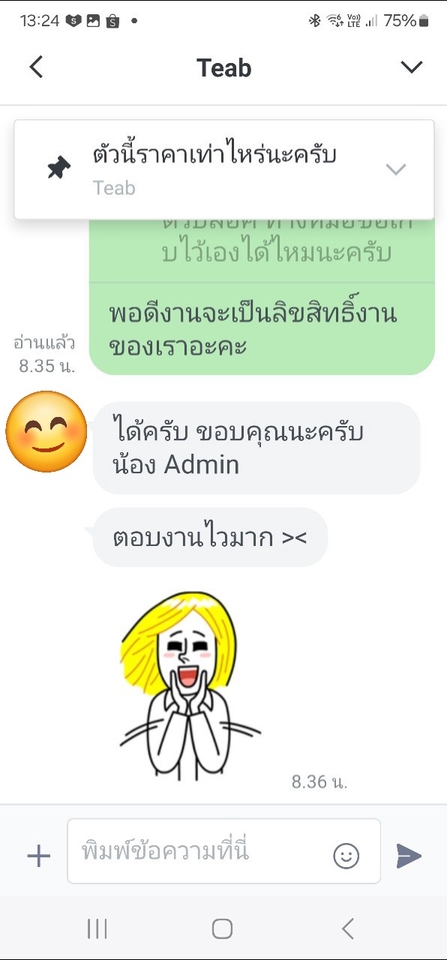 - • ตอบแชทลูกค้าในไลน์