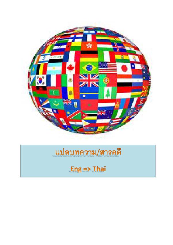 แปลบทความ/สารคดีประเภทต่างๆ จากภาษาอังกฤษภาษาไทย - ประเภทชีวประวัติ - เรื่องราวทั่วไป - How to - ด้านการท่องเที่ยว - ด้านประวัติศาสตร์ ลูกค้าสามารถติดต่อเพื่อสอบถามรายละเอียดของงานที่จะแปล ข้อกำหนดต่างๆ ในการใช้คำ, ชื่อเฉพาะต่างๆ รวมทั้งกำหนดวันส่งงานค่ะ รายละเอียดราคาเพิ่มเติม หลังจากส่งไฟล์งานที่แปลแล้ว กรุณาตรวจเช็คความถูกต้องภายใน 24 ชั่วโมงนะคะ *ในกรณีที่มีงานล้นมือ อาจขอเพิ่มระยะเวลาในการแปลไปอีกตามความเหมาะสมนะคะ ขั้นตอนการทำงาน 1. ลูกค้าส่งรายละเอียดงานที่ต้องการแปล 2. ประเมินราคา และกำหนดส่ง 3. ชำระเงิน 4. ทำงานและจัดส่งตัวอย่างให้ลูกค้าตรวจสอบ