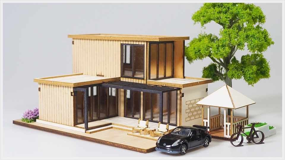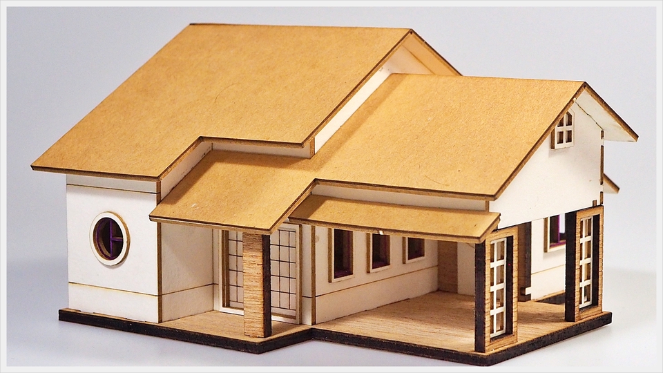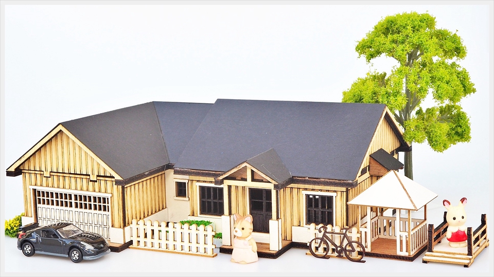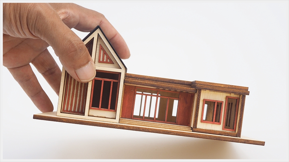- • บ้านที่ทำจากวัสดุ ไม้อัดแฟนซี, MDF., กระดาษชานอ้อย, KraftPaper, Acrylic