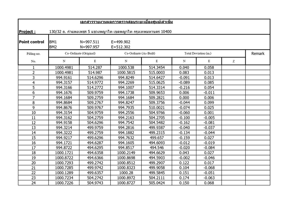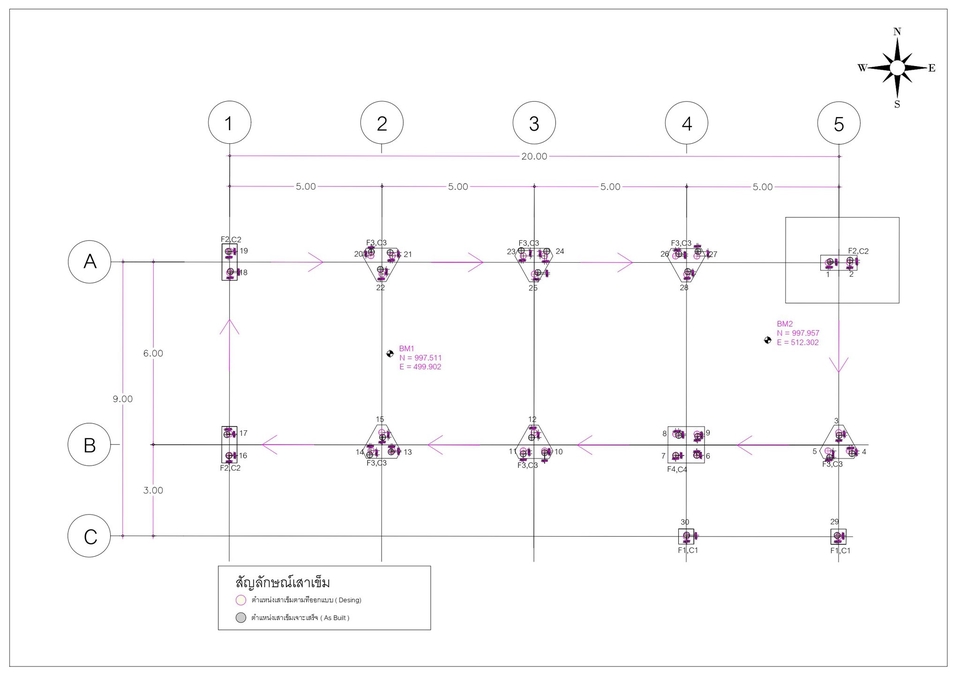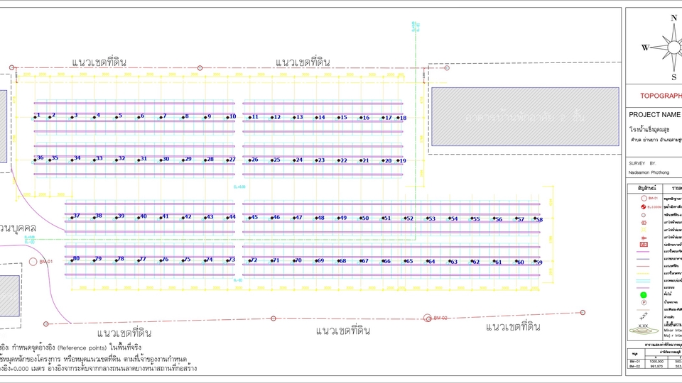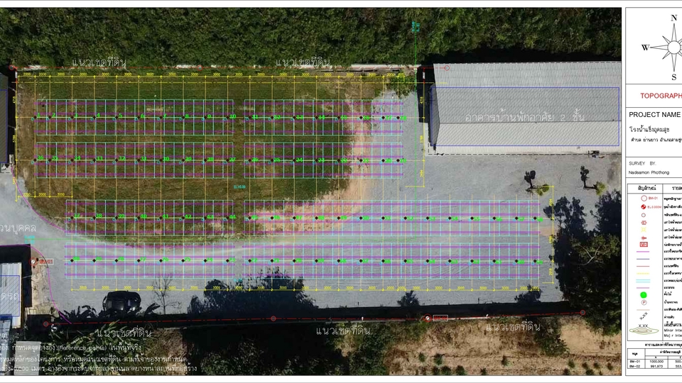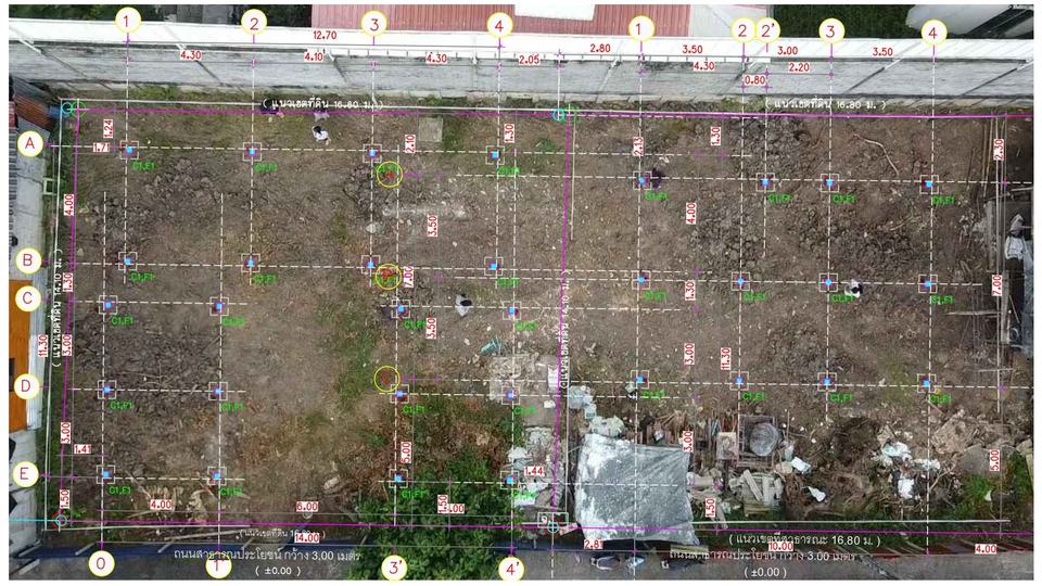 วางตำแหน่งหมุดเสาเข็ม ครอบผังบริเวณฯ