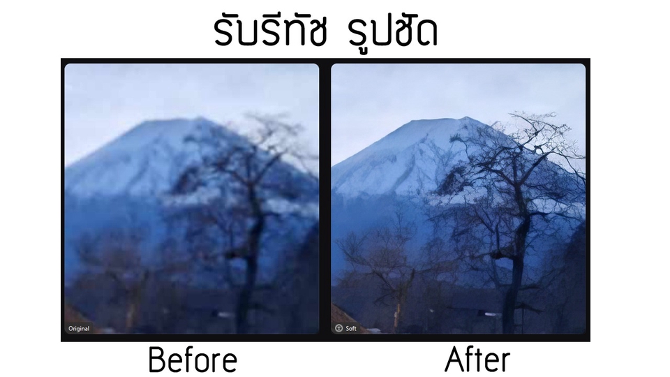 เรามีความเชี่ยวชาญในการรีทัชภาพที่ไม่ชัดให้กลับมาชัดเจนและมีความละเอียดสูงขึ้น ・รับรีทัชรูปจากรูปที่ไม่ชัด: หากคุณมีรูปภาพที่ไม่ชัดเจน เราสามารถใช้เทคนิคการรีทัชและการปรับความคมชัด เพื่อเพิ่มความชัดเจนให้กับภาพนั้น ทำให้รายละเอียดต่าง ๆ ในภาพเด่นชัดมากขึ้น เหมาะสำหรับการใช้งานในโซเชียลมีเดีย การพิมพ์ หรือการนำเสนอ ・ปรับรูปภาพขนาดเล็กเป็นรูปภาพขนาดใหญ่: หากคุณมีภาพที่มีขนาดเล็ก เราสามารถปรับขนาดภาพให้ใหญ่ขึ้น โดยใช้เทคโนโลยีการอัปสเกล (Upscaling) ที่ช่วยรักษาคุณภาพของภาพให้คมชัด แม้ว่าขนาดจะเพิ่มขึ้น แต่การปรับนี้จะขึ้นอยู่กับรายละเอียดของภาพว่าเล็กขนาดไหน หากภาพมีรายละเอียดต่ำมาก อาจมีการสูญเสียความคมชัดบ้าง หลังจากเสร็จสิ้นการทำงาน ลูกค้าจะได้รับไฟล์งานในรูปแบบ JPEG ซึ่งเป็นรูปแบบที่สามารถใช้งานได้ง่ายและสะดวกต่อการแชร์หรือพิมพ์ หากคุณมีคำถามเพิ่มเติมหรือต้องการส่งภาพให้เรารีทัช สามารถติดต่อได้เลย! ขั้นตอนการทำงาน 1. แจ้งรายละเอียดที่ลูกค้าต้องการ 2. ยืนยันงาน 3. รับงาน