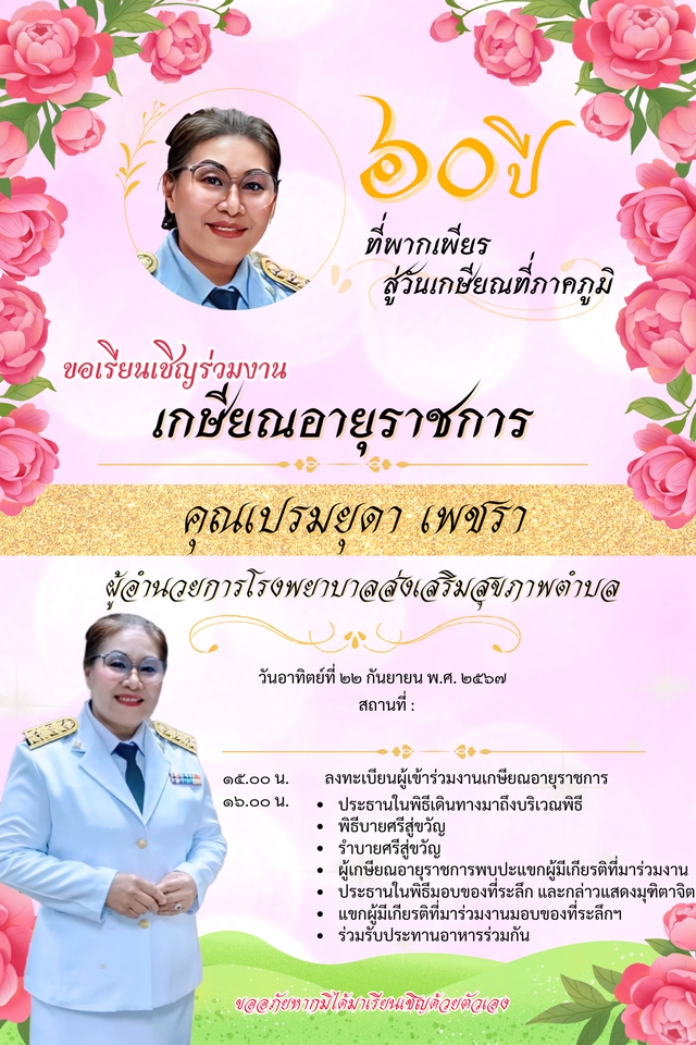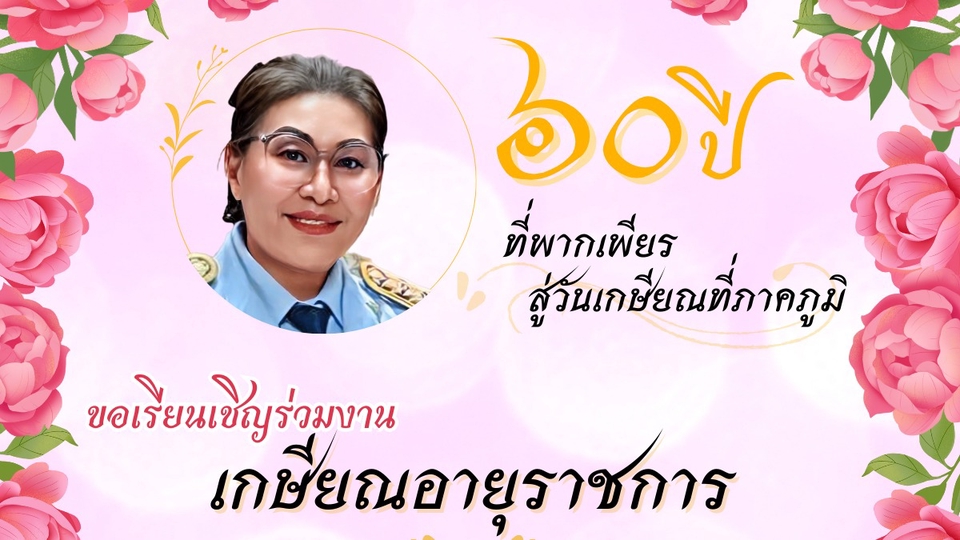 ออกแบบการ์ด งานเกษียณ-โทนชมพูดอกไม้