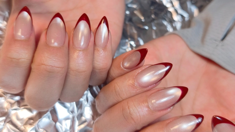 เล็บเจลลูกแก้ว+เฟร้นช์ปลาย(เลือกสีได้)