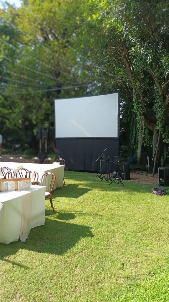 บริการให้เช่าจอโปรเจคเตอร์ จอทีวี ครบวงจร ภาพแสงสีเสียง ครบวงจร Indoor & Outdoor ทั่วประเทศ มีบริการจอโปรเจคเตอร์ตั้งแต่ขนาด 1.5 เมตร จนถึงจอหนังกลางแปลงขนาด 10เมตร มีบริการเช่าทีวี ตั้งแต่ 55" -65" ขั้นตอนการทำงาน 1. สรุปราคา วัน สถานที่ และสินค้าที่ต้องการเช่า 2. มัดจำค่าบริการ 50% 3. บริการติดตั้งพร้อมดูแลทุกขั้นตอน 4. ชำระส่วนที่เหลือวันจบงาน