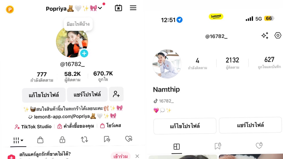 ฉันเป็นคนร่าเริง ชอบพูดคุย แต่อาจจะมีบางทีที่เขินอาย ตอนนี้จบและทำงานแล้ว อายุ26 ปี
