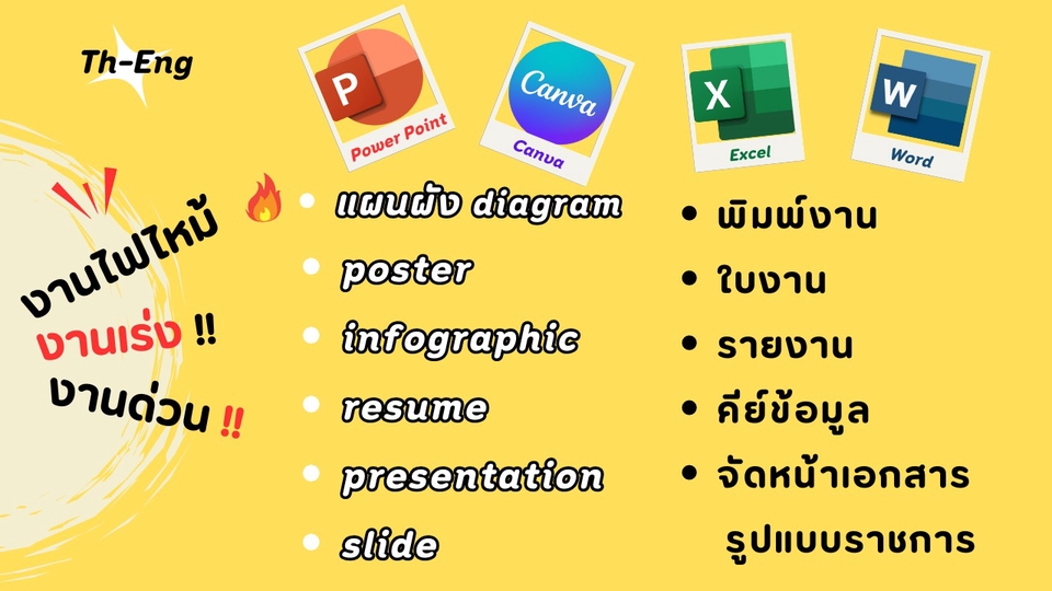 รับงานพิมพ์งานจัดหน้าเอกสารในรูปแบบราชการหรือเอกชนอย่างมืออาชีพ มีประสบการณ์ทำงานด้านนี้มากกว่า 10 ปี ทุกงานที่รับทำด้วยตัวเองทั้งหมดคุยง่าย ส่งงานเร็ว