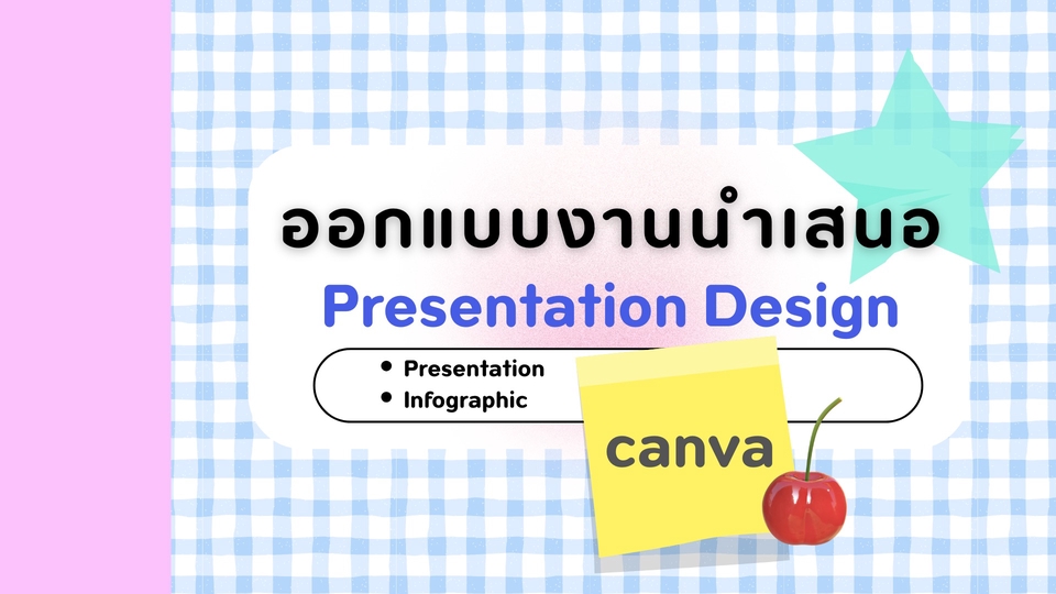 ออกแบบงานนำเสนอ อินโฟกราฟิก และโปสเตอร์ โดยใช้ Canva เป็นหลัก งานที่ทำจะเน้นความน่ารัก เรียบง่าย อ่านง่าย และดูสวยงามตามความเหมาะสมกับเนื้อหา แม้จะยังไม่ใช่มืออาชีพเต็มตัว แต่ตั้งใจทำทุกชิ้นงานให้ดีที่สุด และพร้อมปรับตามคำแนะนำของลูกค้าเสมอ