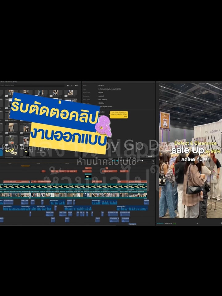 รายละเอียดงาน รับตัดคลิปสั้นทุกแนว - ขอแค่มีบรีฟชัดเจน ราคานี้รวมทุกอย่าง - คลิปสั้น ไม่เกิน 3 นาทีเท่านั้น - ตัดต่อใน Capcut เป็นหลัก ประสบการณ์และความเชี่ยวชาญ - รับตัดต่อฟรีแลนซ์มาเกือบ 1 ปี - และฝึกฝนตั้งแต่อายุ 15-16 ราวๆ 5-6 ปีที่ผ่านมา - เชี่ยวชาญ Capcut(ใช้ส่วนมาก)และ Premiere pro ขั้นตอนการทำงาน - พูดคุยเกี่ยวกับแนว หรือ สไตล์ที่ชอบ - ส่งเรฟ พร้อม ตัวอย่างคลิปที่อยากได้ - บรีฟงานครบถ้วน ทั้งแนวทาง ฟอนต์ โทนสี โทนภาพ - ส่งผลงานดราฟแรก 1-3 วัน หลังทำการตกลง - แก้ไขได้ไม่เกิน 2 ครั้ง (ไม่รวบคำผิด) หากแก้ไขมากกว่านั้น คิดครั้งละ 100.- - ส่งไฟล์เป็นลิ้งค์ Google drive สิ่งที่ต้องการจากผู้ว่าจ้าง - บรีฟที่ชัดเจน - หากให้ใส่โลโก้ หรือ เบอร์ติดต่อ ให้แจ้งก่อน ข้อกำหนดและเงื่อนไข - ไม่รับงานที่เกี่ยวข้องกับการพนันและสิ่งผิดกฎหมาย