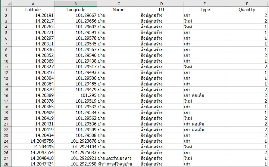 ฿1,000- เก็บค่าพิกัดสถานที่ - ทำข้อมูลattribute table ราคาเเละเวลาของงานขึ้นอยู่กับปริมาณงาน