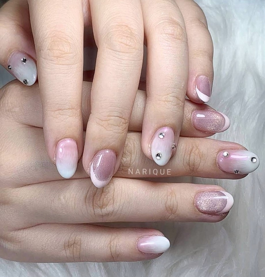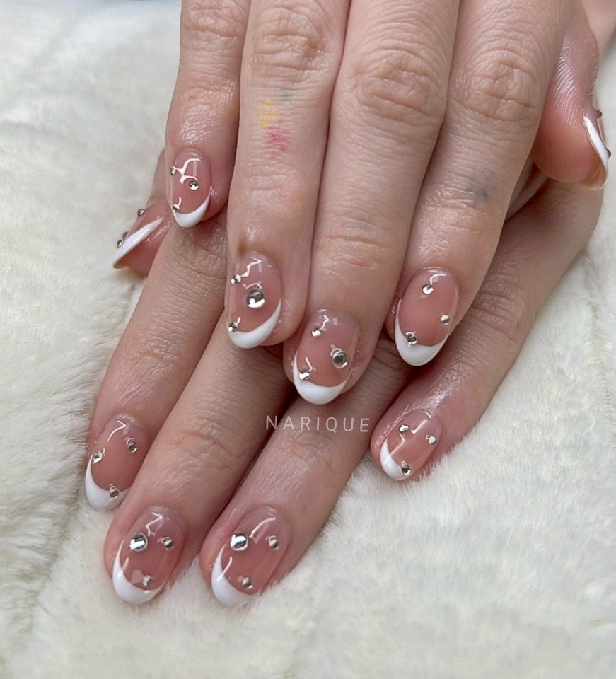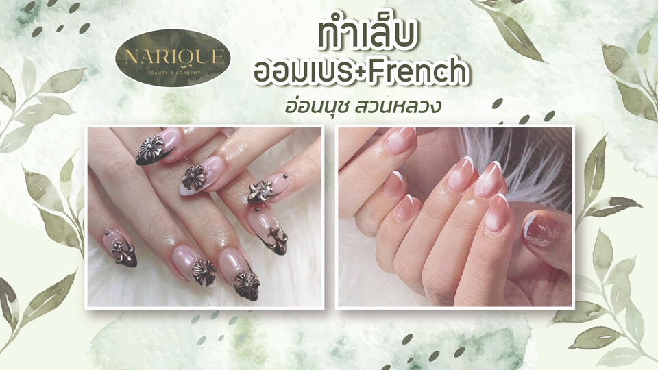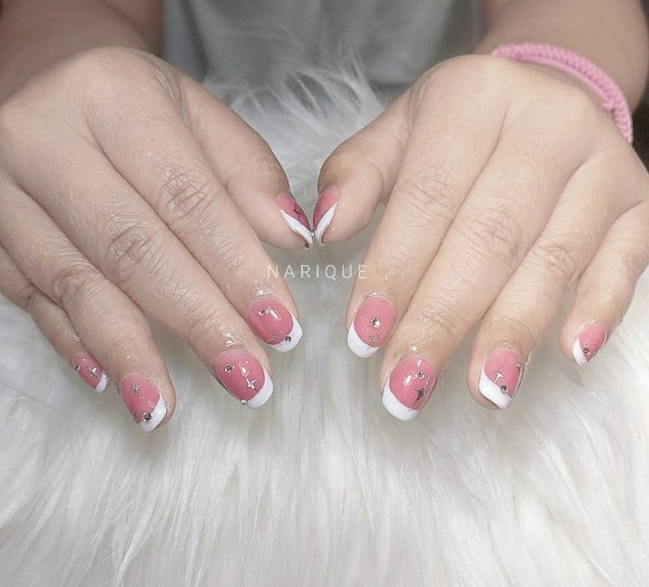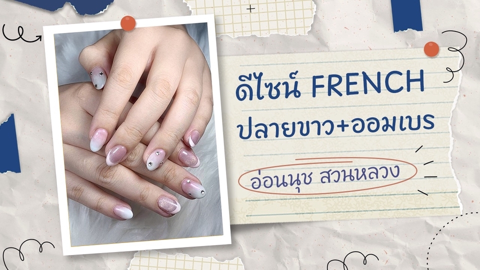 (อ่อนนุช สวนหลวง) งานดีไซน์ออมเบร+French ปลายขาวหรือปลายสีอื่น เพิ่มตกแต่งเพชร/อะไหล่