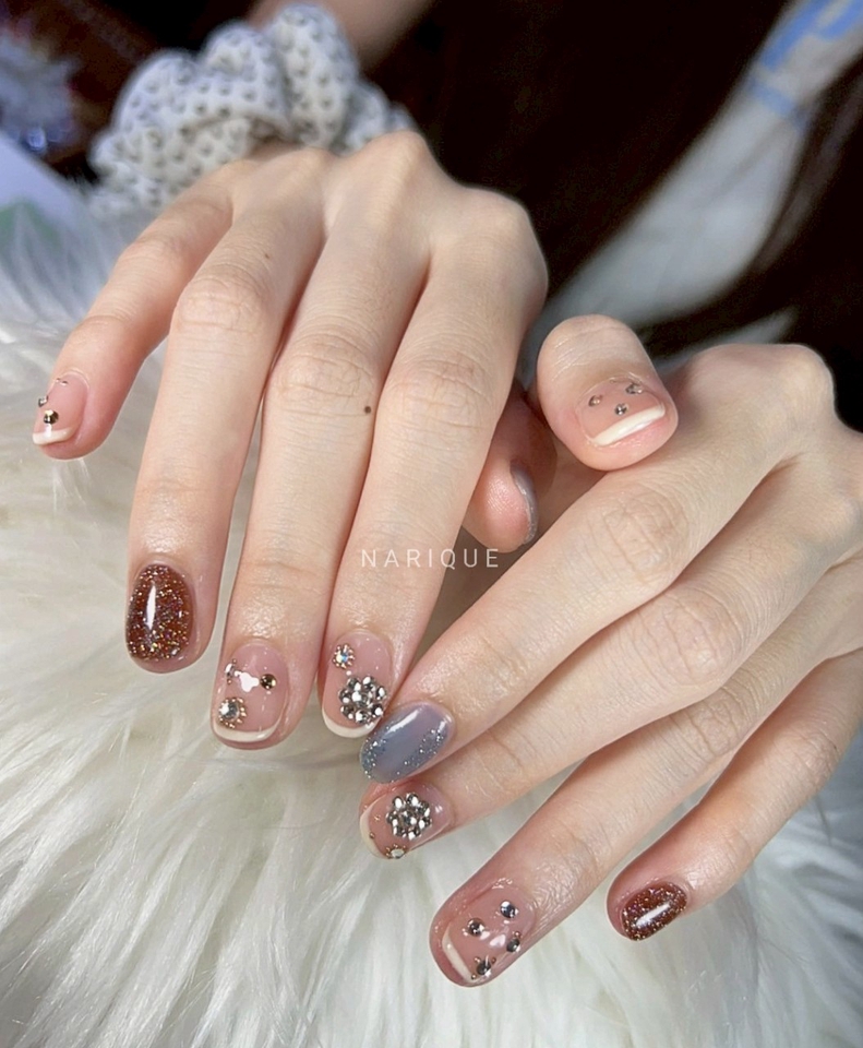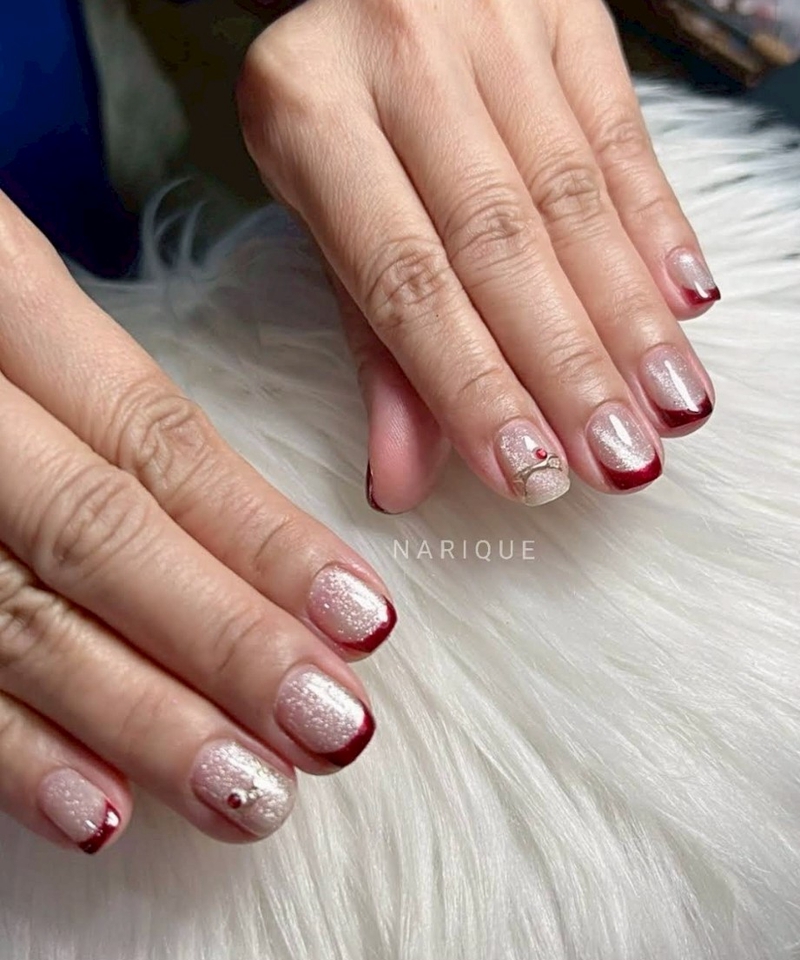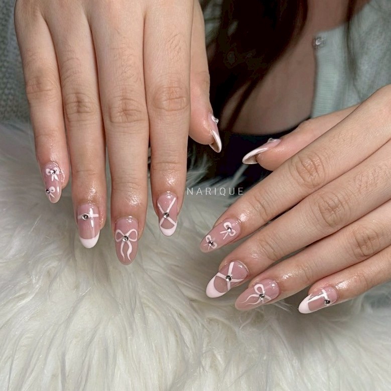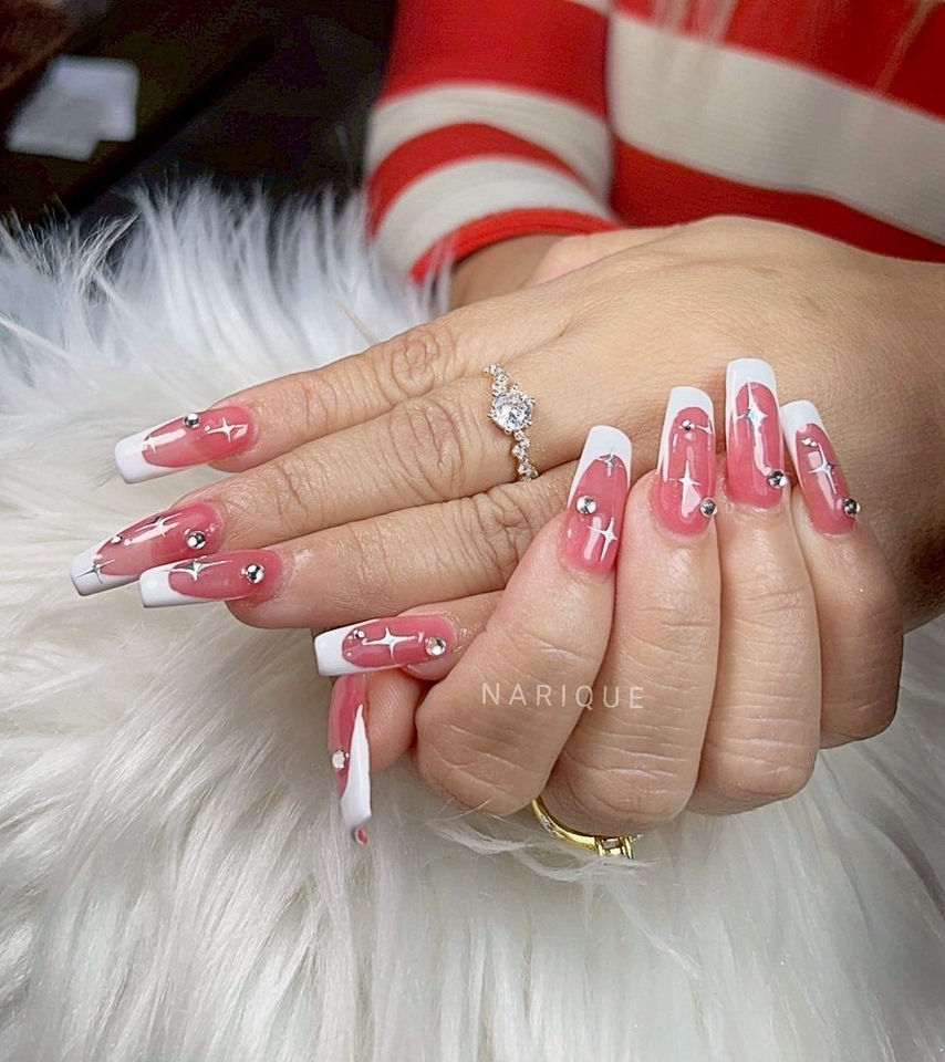 (อ่อนนุช สวนหลวง) งานดีไซน์ออมเบร+French ปลายขาวหรือปลายสีอื่น เพิ่มตกแต่งเพชร/อะไหล่