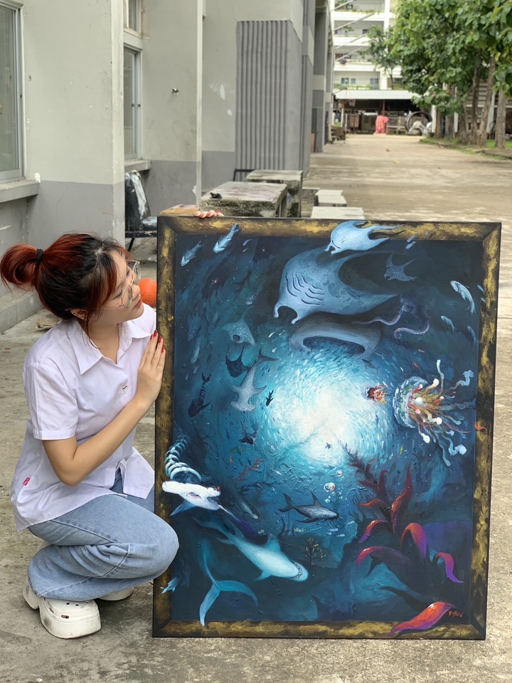 รับวาดภาพคนเหมือน ภาพวิว เเละวาดเกี่ยวกับเเนวเซอร์เรียลลิสม์ ปัจจุบันศึกษาที่มหาวิทยาลัยเชียงใหม่ คณะวิจิตรศิลป์ สาขาจิตรกรรม อยากลองหาจ๊อบ/งานเสริมเพื่อเเบ่งเบาภาระผู้ปกครองค่ะ ขั้นตอนการทำงาน 1. ขั้นตอนบรีฟงานเบื้องต้น 2. ขั้นตอนสเกชงาน 3. ร่างภาพบนเฟรมผ้าใบ 4. กำหนดโครงสี/ภาพรวม 5. เก็บรายละเอียด