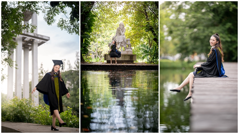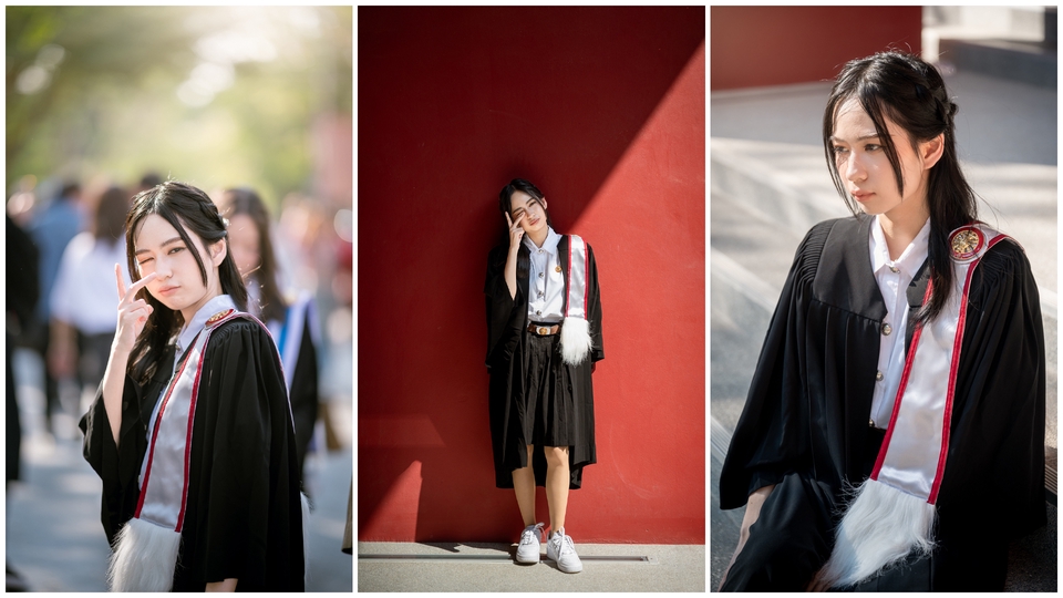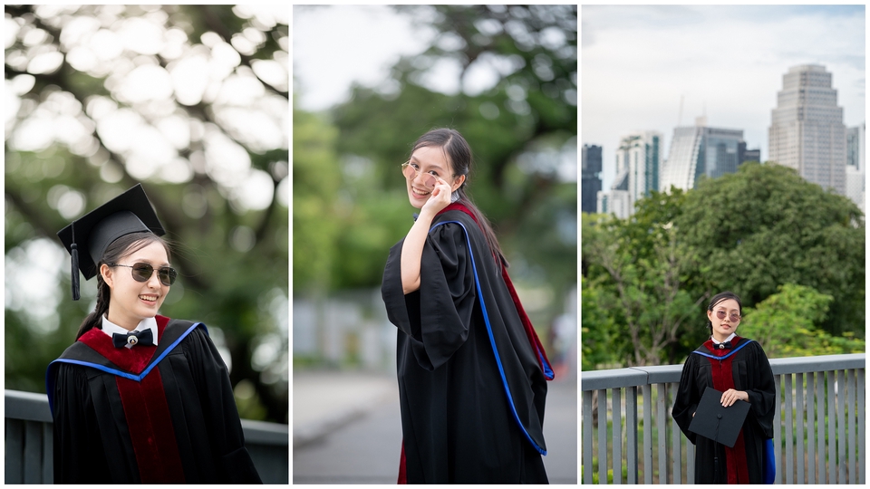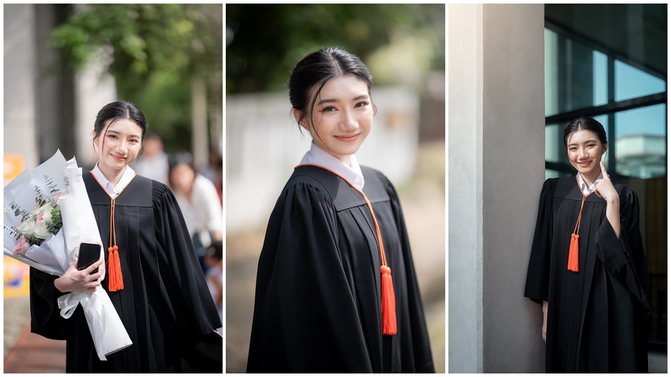 📸🎓 ถ่ายภาพบุลคลชุดครุยในงานรับปริญญา, ไม่ว่าจะเป็นวันซ้อมย่อย, ซ้อมใหญ่ หรือวันรับจริง ช่างภาพสามารถคิดท่า หามุมถ่ายรูปให้คุณดูดีได้ หรือคุณจะรีเควสท่าทางหรือมุมถ่ายรูปเองก็ย่อมได้ครับ 📸 ถ่ายไม่จำกัดจำนวนภาพ 🏙️ ส่งตัวอย่างที่แต่งแล้ว 10-15 รูป ภายใน 1 วันหลังเสร็จงาน ✉️ ส่งรูปที่แต่งแล้วทั้งหมดภายใน 5-7 วัน ขั้นตอนการทำงาน 1. คุยรายละเอียดและตกลงกับคุณลูกค้า 2. ถ่ายรูปในวันที่ตกลงไว้กับคุณลูกค้า 3. ส่งรูปตัวอย่าง 10-15 รูป ภายในเย็นหลังถ่ายงานเสร็จ 4. แต่งภาพที่ถ่ายมาในวันที่ตกลงกับคุณลูกค้า 5. ส่งภาพผ่านทาง Google Drive