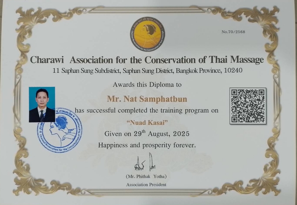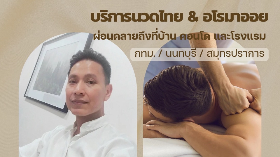 Rest and Relax by Nat บริการนวดเพื่อสุขภาพและผ่อนคลายความเมื่อยล้าถึงที่บ้านคุณ ด้วยประสบการณ์ดูแลลูกค้าทั้งชาวไทยและต่างชาติ และผ่านการอบรมนวดแผนไทยโบราณต้นตำรับจากวัดโพธิ์ พร้อมมอบบริการ • Thai Massage • Foot Massage • Aroma Oil Massage • Vitality Restoration Massage ฟรีค่าเดินทางในโซนลาดพร้าว บางกะปิ รามคำแหง และมีนบุรี (นอกเหนือจากโซนดังกล่าว มีค่าเดินทางเริ่มต้น 200 บาท สามารถส่งพิกัดเพื่อประเมินระยะทางได้ครับ) ขั้นตอนการทำงาน 1. เมื่อจองเวลารับบริการแล้ว นักบำบัดจะไปถึงยังสถานที่นัดหมายภายใน 1 ชั่วโมงก่อนเวลาเริ่มบริการ 2. กรุณาแจ้งนักบำบัดหากมีปัญหาสุขภาพ หรือมีส่วนใดในร่างกายที่ต้องระวังเป็นพิเศษก่อนเริ่มรับบริการ