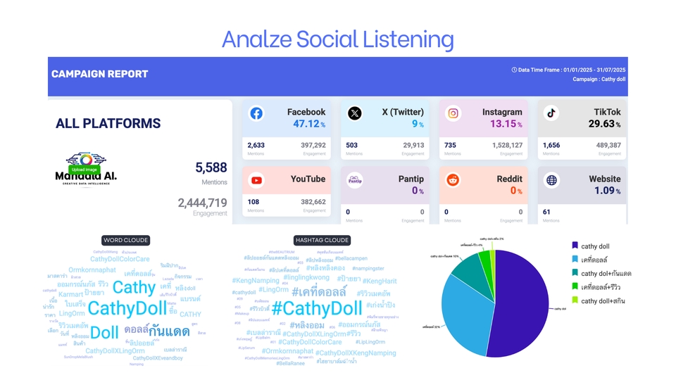📢 หากกำลังมองหาเครื่องมือวิเคราะห์เทรนด์ออนไลน์ โซเชียลมีเดีย หรือ Insight ผู้บริโภค สามารถศึกษา Social Listening ได้ในแพ็กเกจเริ่มต้นนี้ 📋 รายละเอียดบริการ Social Listening 📈 เริ่มต้น 2,000 Mentions - ครอบคลุม FB, IG, X, TikTok, YouTube, Website - กำหนดคีย์เวิร์ดสูงสุด 8 คำ ต่อแบรนด์/เรื่อง - วิเคราะห์ Top Engagement และกระแสสำคัญ 🎯 ขอบเขตการศึกษา - ใช้ Mandala Analytics ประมวลผลข้อมูล - ติดตาม Hashtag, Keywords, Topic ที่ถูกพูดถึงมากที่สุด - เปรียบเทียบผลลัพธ์ระหว่าง แบรนด์/คู่แข่ง - จัดทำ Insight ที่สำคัญ - สร้าง Visualization เพื่อวิเคราะห์ภาพรวม 📝 ผลลัพธ์ที่ได้ (ขึ้นอยู่กับแพ็กเกจที่เลือก) - รายงาน Insight และข้อมูลเชิงตัวเลข - วิเคราะห์ กลยุทธ์ เพื่อปรับแผนการตลาด - Dashboard (Power BI / Tableau)