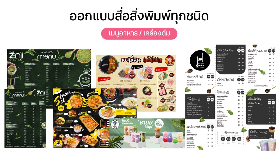 ออกแบบสื่อสิ่งพิมพ์ทุกชนิด เมนู นามบัตร โปสเตอร์ ป้ายไวนิล สติ๊กเกอร์ และอื่นๆ