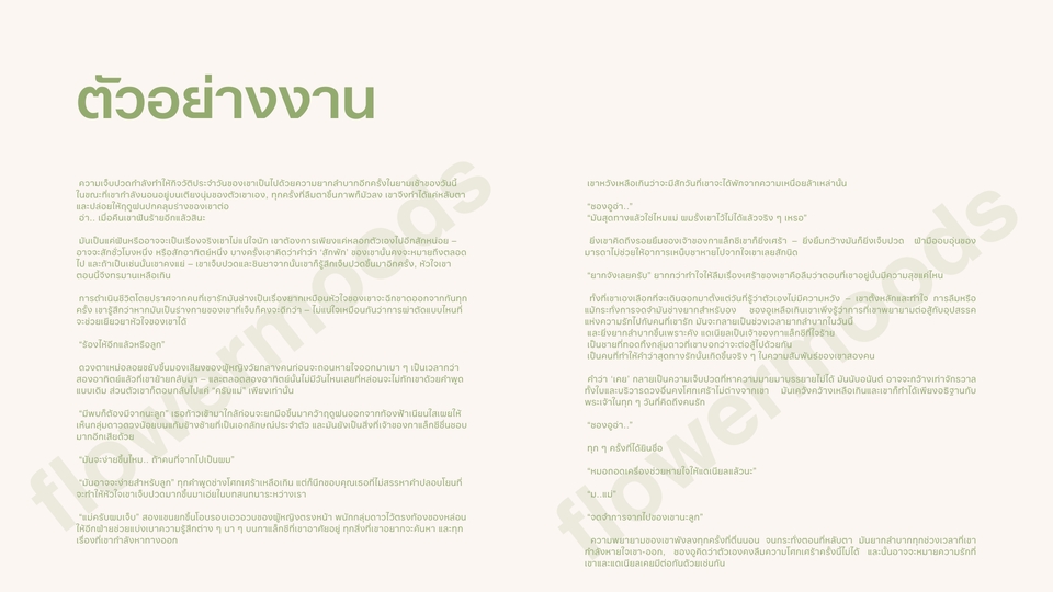 รับเขียนนิยายแชท บรรยาย พล็อตนิยาย เรื่องสั้น นิยายตอนเดียวจบ ฉากเอ็นซี สามารถเขียนได้ทั้งแฟนฟิค และออริจินอล มีประสบการณ์เขียนนิยายแชททาง ReadAwrite สามารถพูดคุย ปรึกษาพล็อตหรือขอดูผลงานอื่น ๆ ได้ ประเภทงานที่ถนัด • Romantic / Drama / Life novel / Fantasy / AU / Verse / Period ขั้นตอนการทำงาน 1. บรีฟรายละเอียดงาน 2. ระบุวันที่ต้องการรับงาน 3. แก้ไขได้ฟรี 3 ครั้ง 4. อัพเดทความคืบหน้างานเป็นระยะ 5. แก้ไขงานจนกว่าจะพอใจ จึงจะส่งไฟล์งานให้