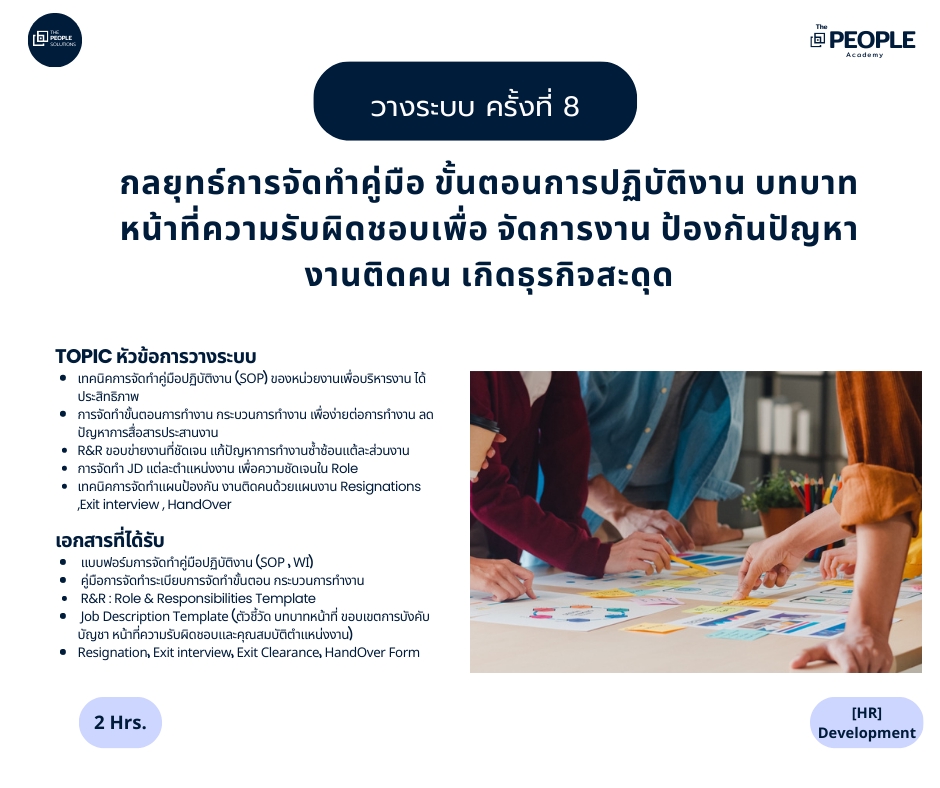 งานวางระบบกลยุทธ์การบริหารทรัพยากรบุคคล เพื่อธุรกิจเติบโต [เลือกหัวข้อการวางระบบได้ 3-10ครั้ง]